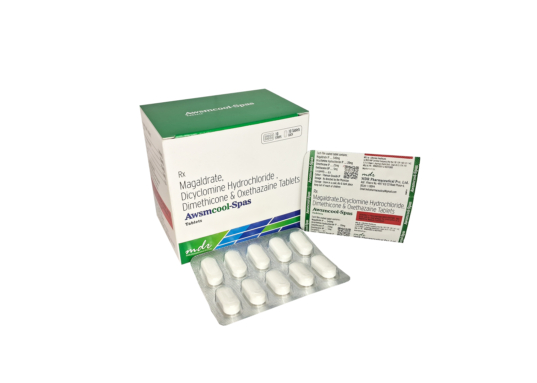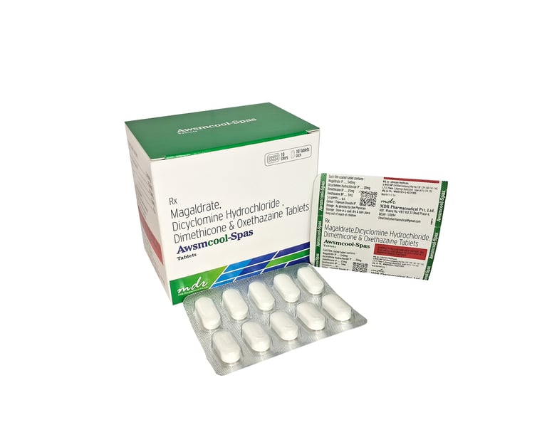 Magaldrate 540 mg, Dicyclomine Hydrochloride 20 mg, Dimethicone 25 mg and Oxethazaine 5 mg Tablets