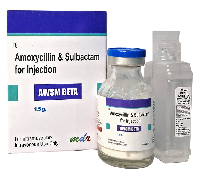 Amoxicillin and Sulbactam Injection is a powerful antibiotic combination used to treat a wide range of bacterial infections. Amoxicillin, a penicillin-class antibiotic, works by inhibiting bacterial cell wall synthesis, while Sulbactam enhances its effectiveness by preventing bacterial resistance. This combination is commonly used for respiratory, urinary tract, skin, and intra-abdominal infections. It is administered via injection under medical supervision to ensure rapid and effective action against infections.